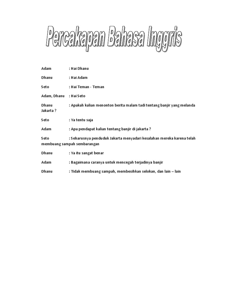 Kata penghubung dalam pembelajaran grammar and structure bisa diwakili oleh conjunctiontransition ataupun prepositionTentu ke 3 model parts of speech tersebut memiiki aturan dan tata cara penggunaan yang berbeda meski memunyai makna yang sama. Efek pengaruhakibat hasil menyebabkan mengakibatkan. Itulah dia dua contoh dialog dalam bahasa Inggris yang membicarakan tentang banjir beserta dampak dan penyebabnya.