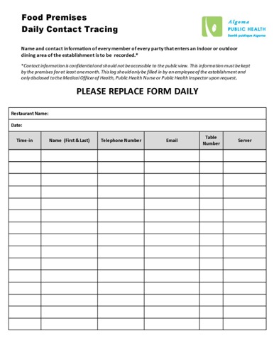 Algoma Public Health Contact Tracing Forms