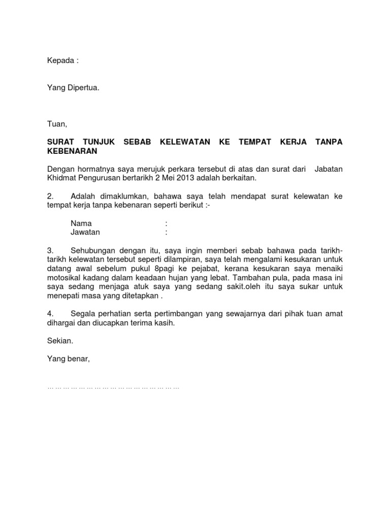 By muhd nazmi 40 in types government politics surat kelewatan datang bekerja. Lihat sini format surat kiriman rasmi. Surat tunjuk sebab lewat.