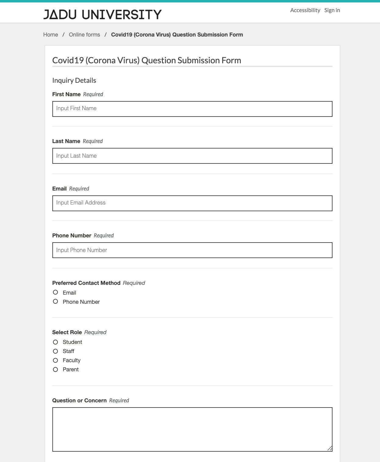 Covid 19 Campus Inquiry Form And Workflow Jadu
