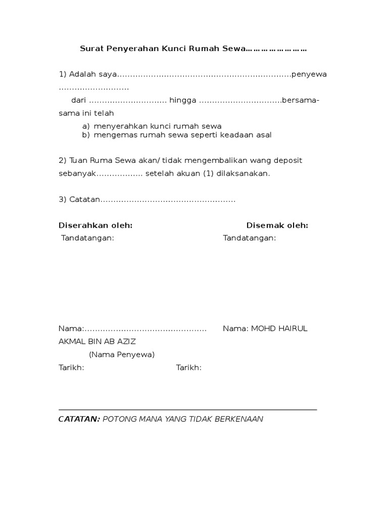 Surat Penyerahan Kunci Rumah Sewa Pdf