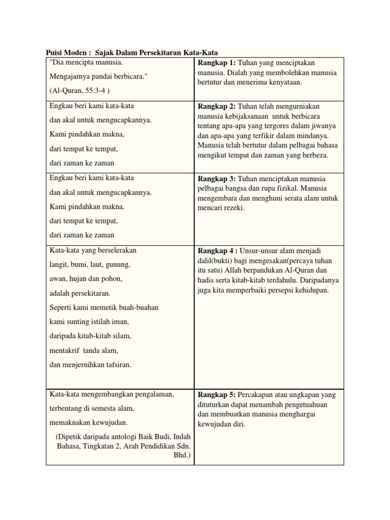 Al-Quran 523-4 Tuhan yang menciptakan manusia. Sajak Dalam Persekitaran Kata-Kata K. Pikirkan alasan suatu kata digunakan untuk membahas karakter.