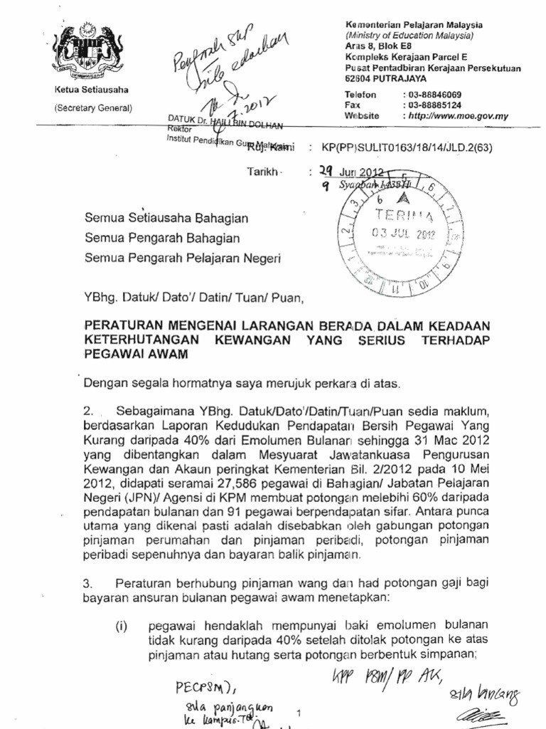 Dimaklumkan mulai April 2017 Jabatan Akauntan Negara Malaysia akan melaksanakan sekatan bayaran potongan gaji Penjawat Awam sehingga maksimum 60 dari jumlah gaji kasar melalui sistem gaji berkomputer JANM. Contoh Jawapan Surat Tunjuk Sebab Letter 7saudara Com from cdnstaticallyio Surat kiriman rasmi aduan tentang anjing liar. Keberhutangan yang serius bagi Pegawai Perkhidmatan Awam.